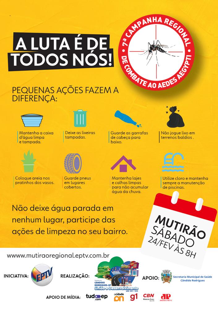 Multirão Sábado, 24 de Fevereiro as 8 horas, não deixe água parada em nenhum lugar, participe das ações de limpeza no seu bairro.
