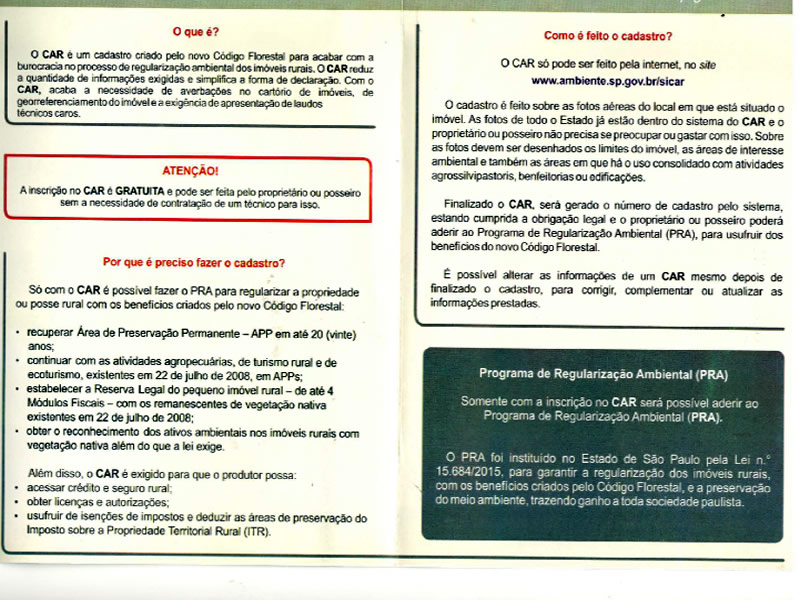 Produtor rural a inscrição no CAR é obrigatória para todos os imóveis, procure a Casa da Agricultura para maiores esclarecimentos.