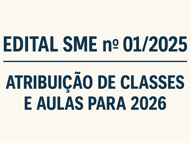 A Secretaria Municipal de Educação publicou o edital que regulamenta o processo de inscrição, classificação e atribuição de classes e aulas para o ano letivo de 2026, aplicável a docentes efetivos, contratados e candidatos à admissão.