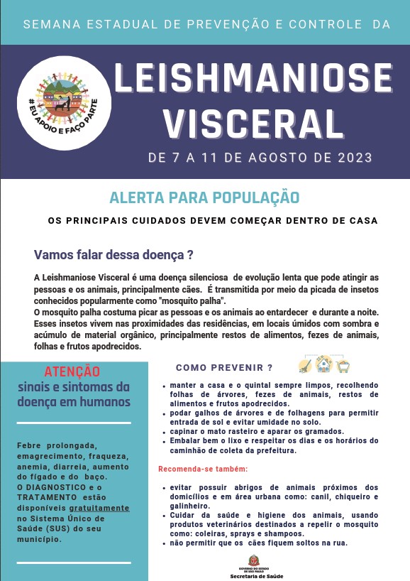Semana Estadual de Prevenção e Controle da LEISHMANIOSE VISCERAL.